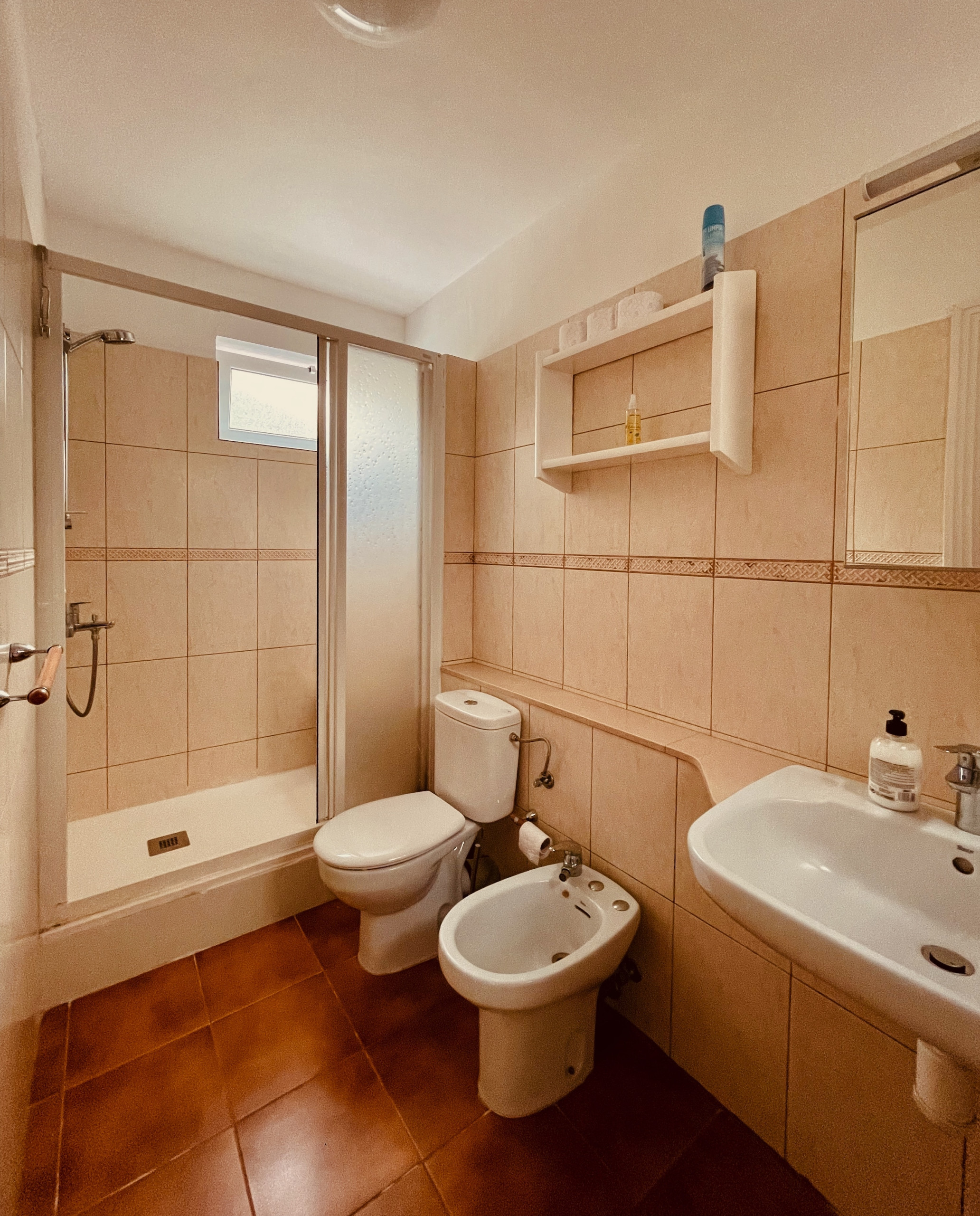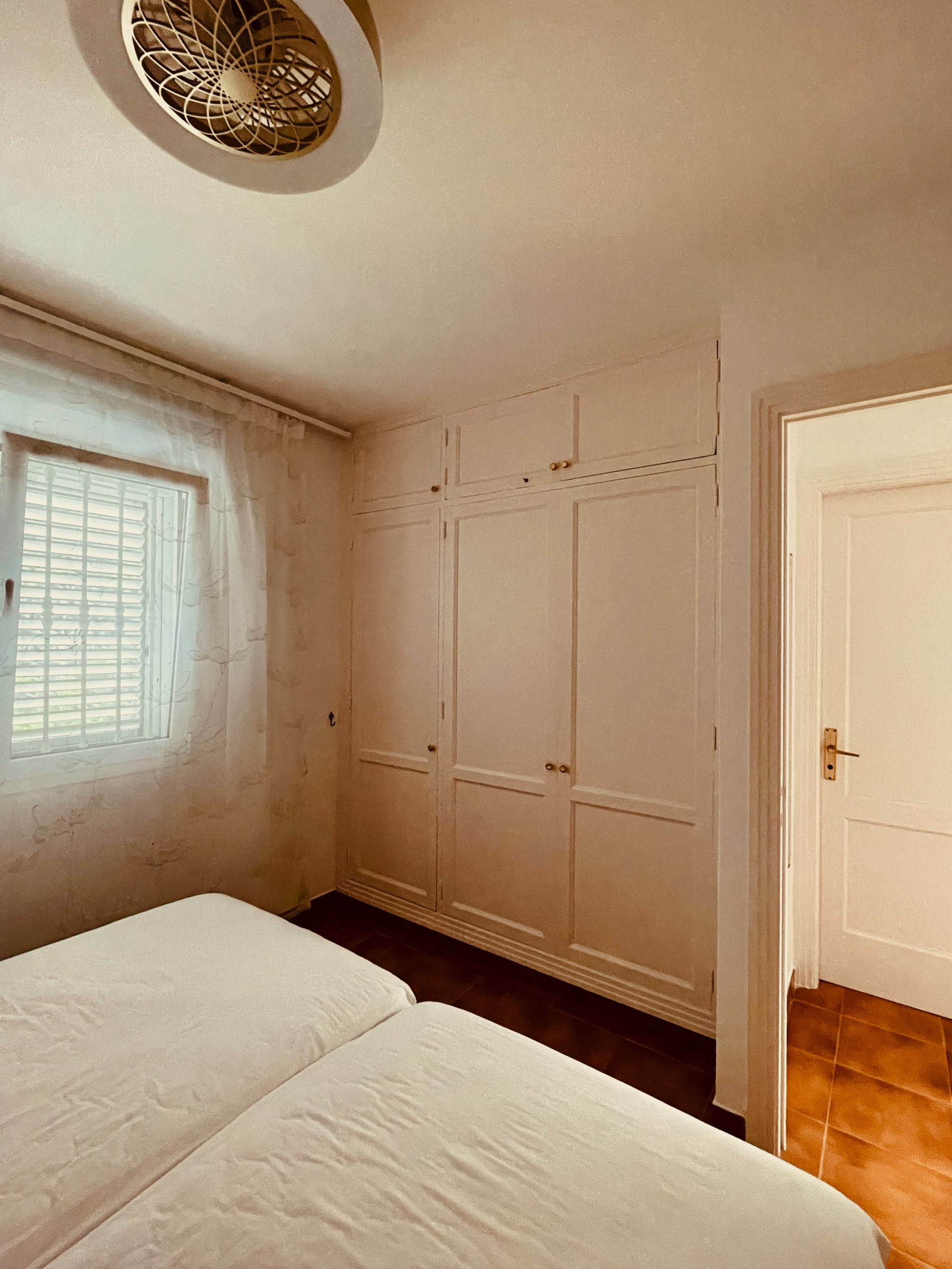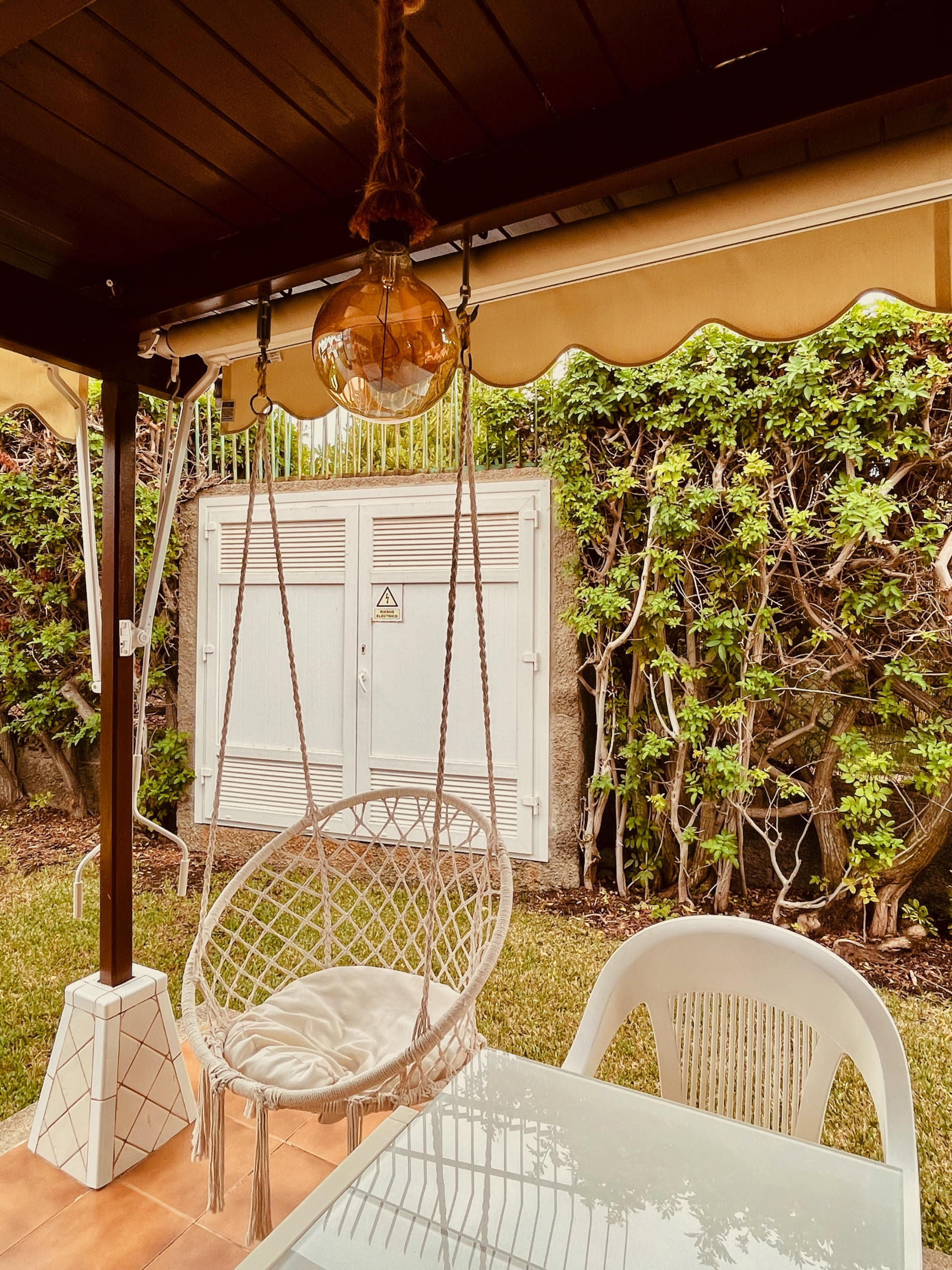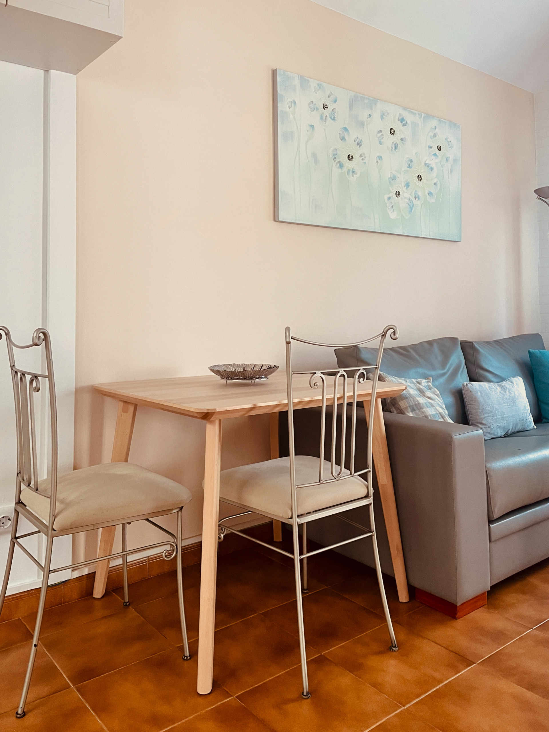 El apartamento cuenta con un dormitorio y está en una urbanización pacífica, perfecta para disfrutar de atardeceres en la terraza privada o mañanas relajantes. Las comodidades incluyen mobiliario de jardín, una terraza espaciosa, lavadora, plancha, conexión a internet (Wi-Fi), y aire acondicionado para un confort óptimo en cualquier estación.