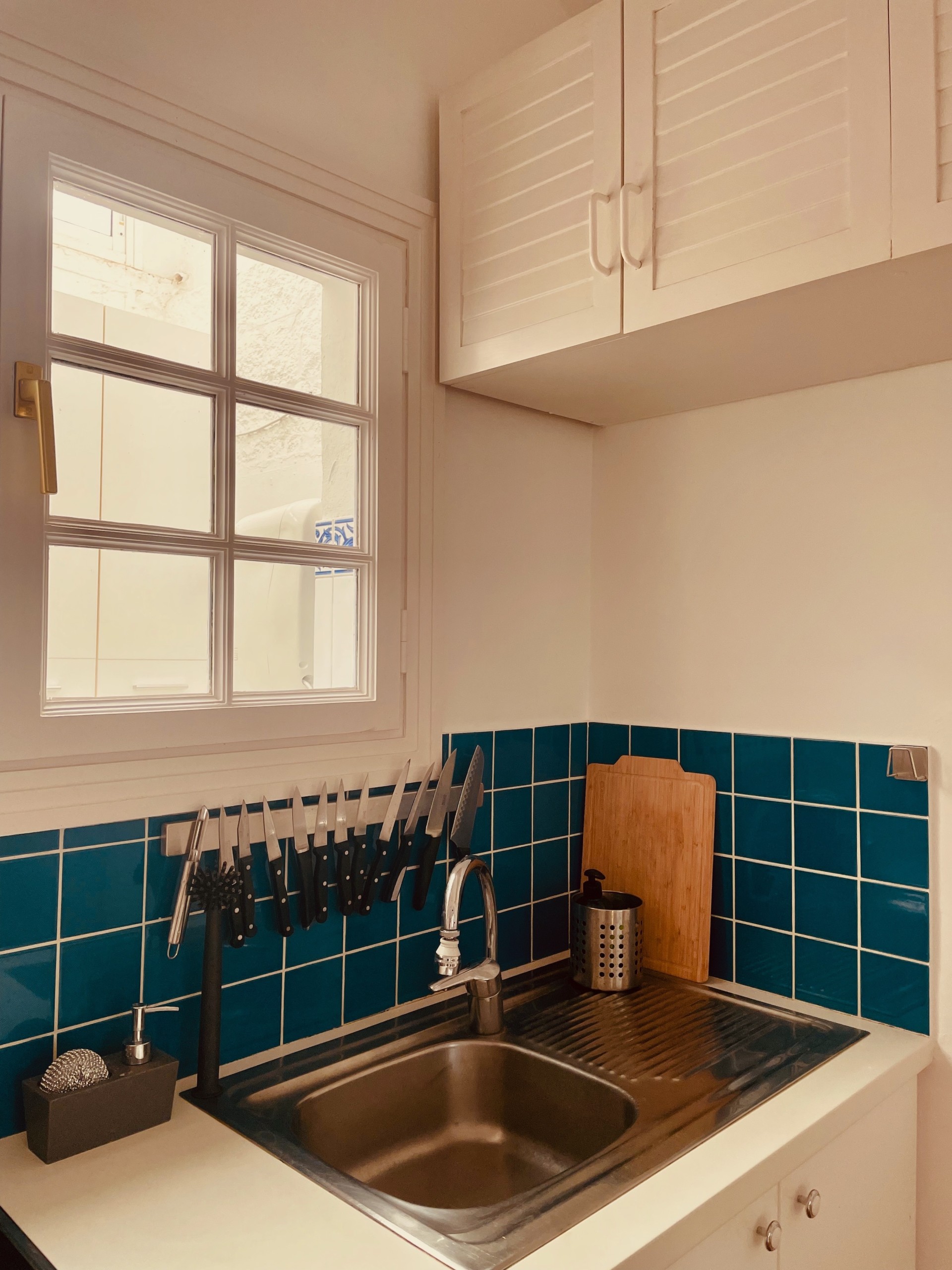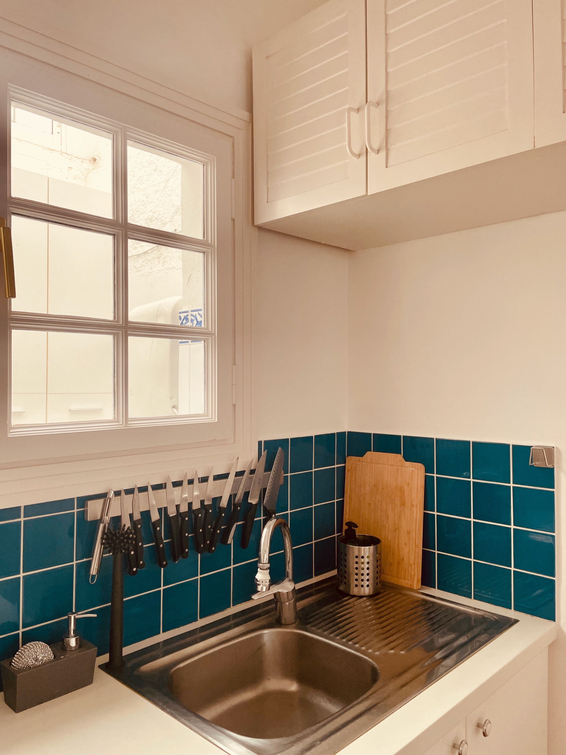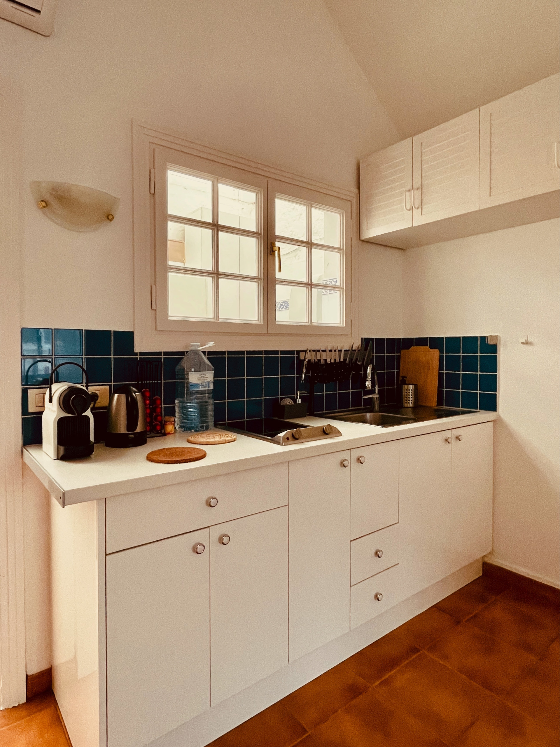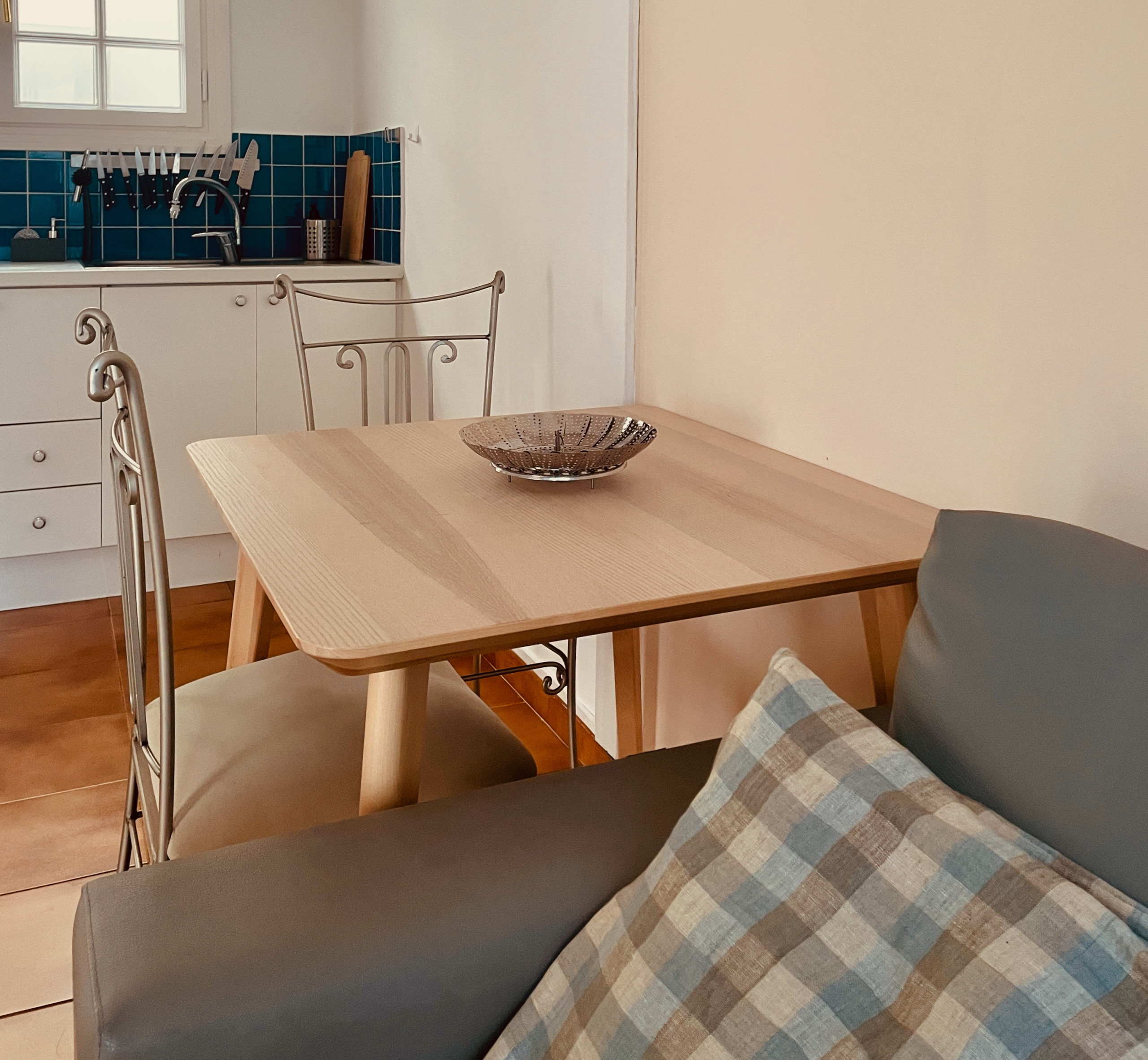 Este luminoso y elegantemente amueblado apartamento ofrece un espacio íntimo de 50 metros cuadrados con una terraza de 60 metros cuadrados que te permitirá disfrutar de vistas impresionantes al jardín. Cuenta con un dormitorio con dos camas individuales que se juntan, ideal para dos personas, y está equipado con todas las comodidades para hacer tu estancia inolvidable.