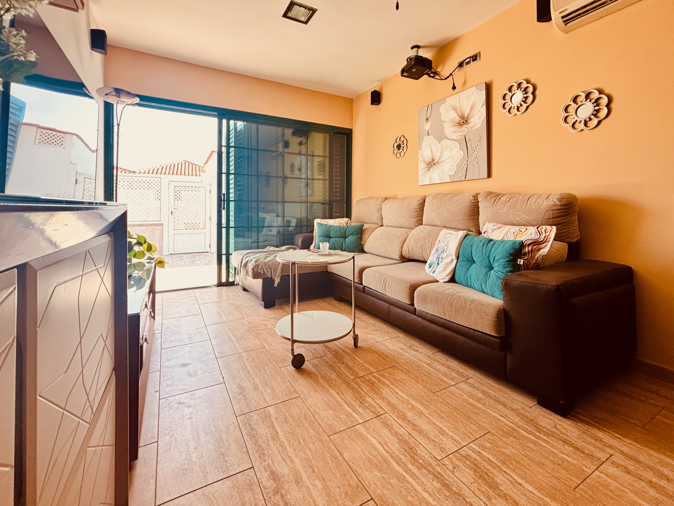 En Maspalomas, muy cerca de la vibra de Playa del Inglés, te espera una casa adosada bañada por la luz canaria. Abres las puertas y el día entra contigo: el jardín invita a desayunos sin prisa, la terraza pide sobremesas largas, y el murmullo de las palmeras marca el ritmo de la tarde.