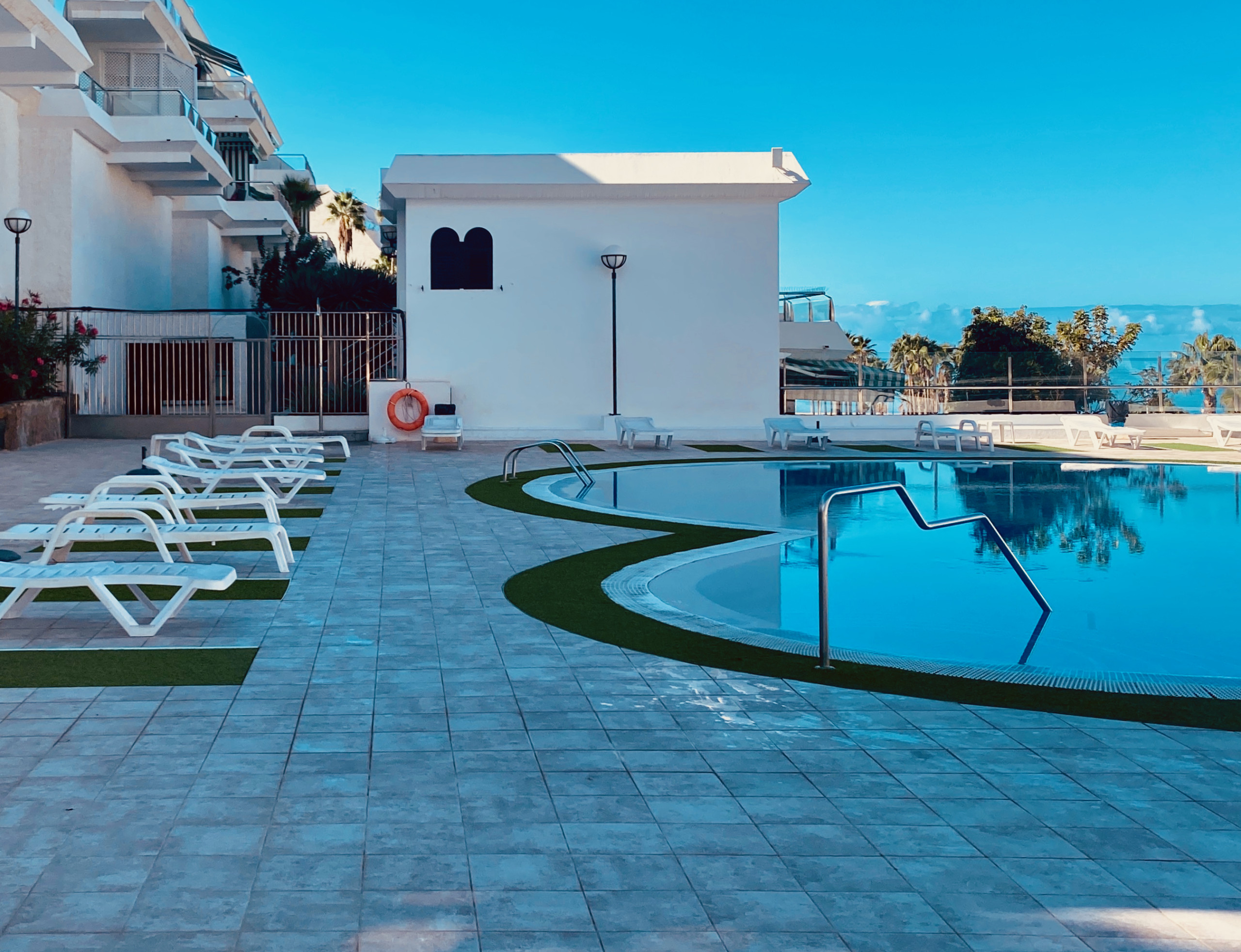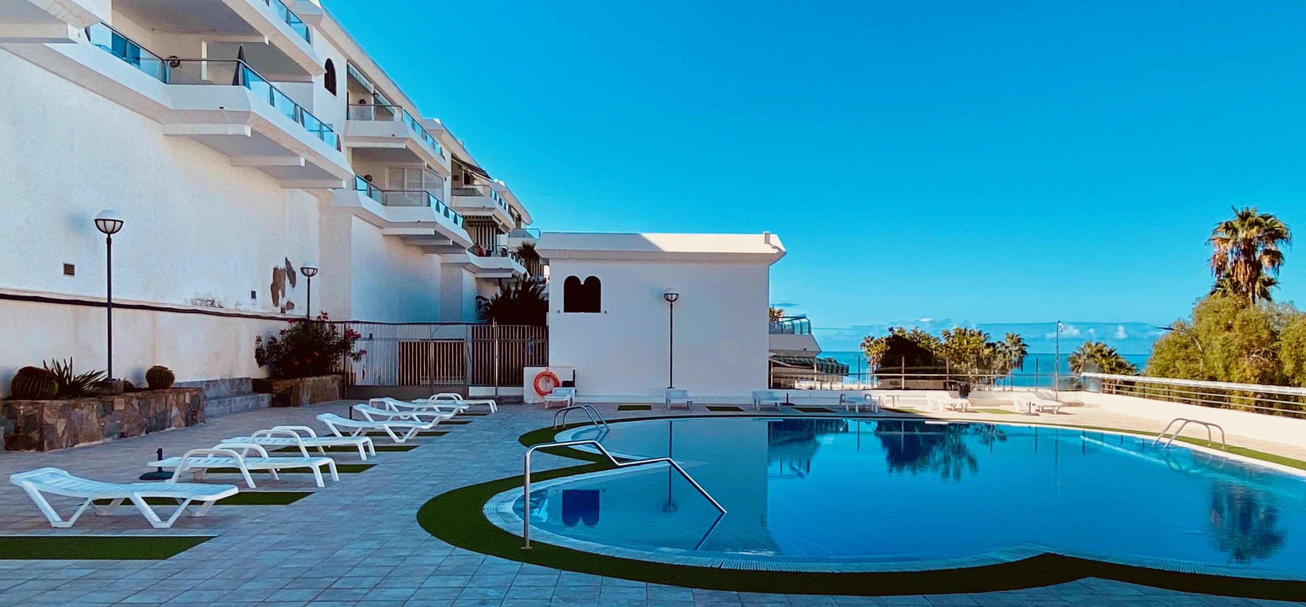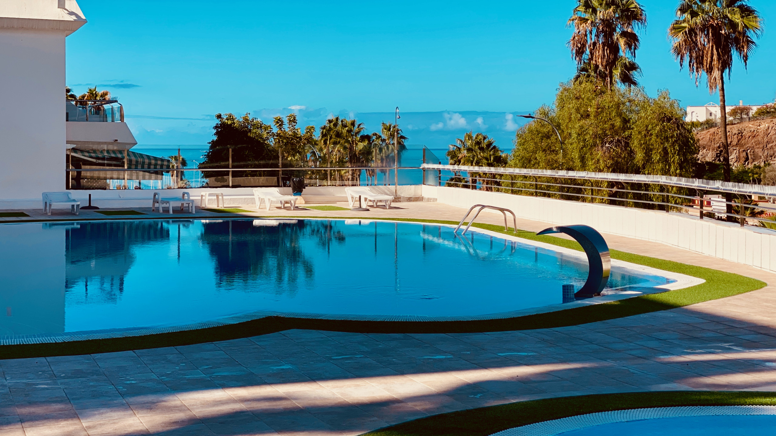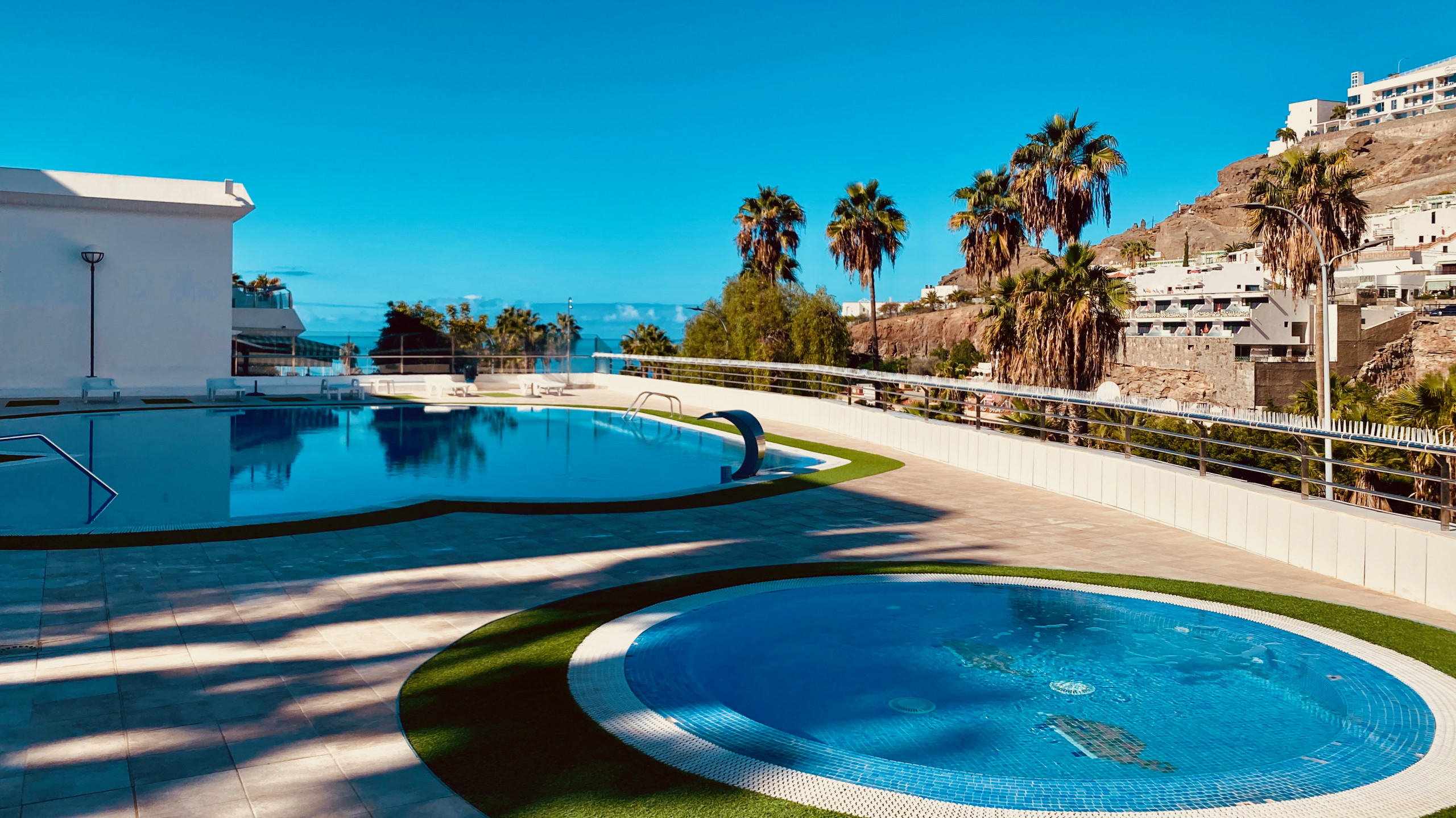 Ruhige und komfortable Wohnung in Puerto Rico. Nur wenige Minuten von Strand und Einkaufszentren entfernt, mit einem großartigen großen Swimmingpool und auch einem Kinderbecken.
