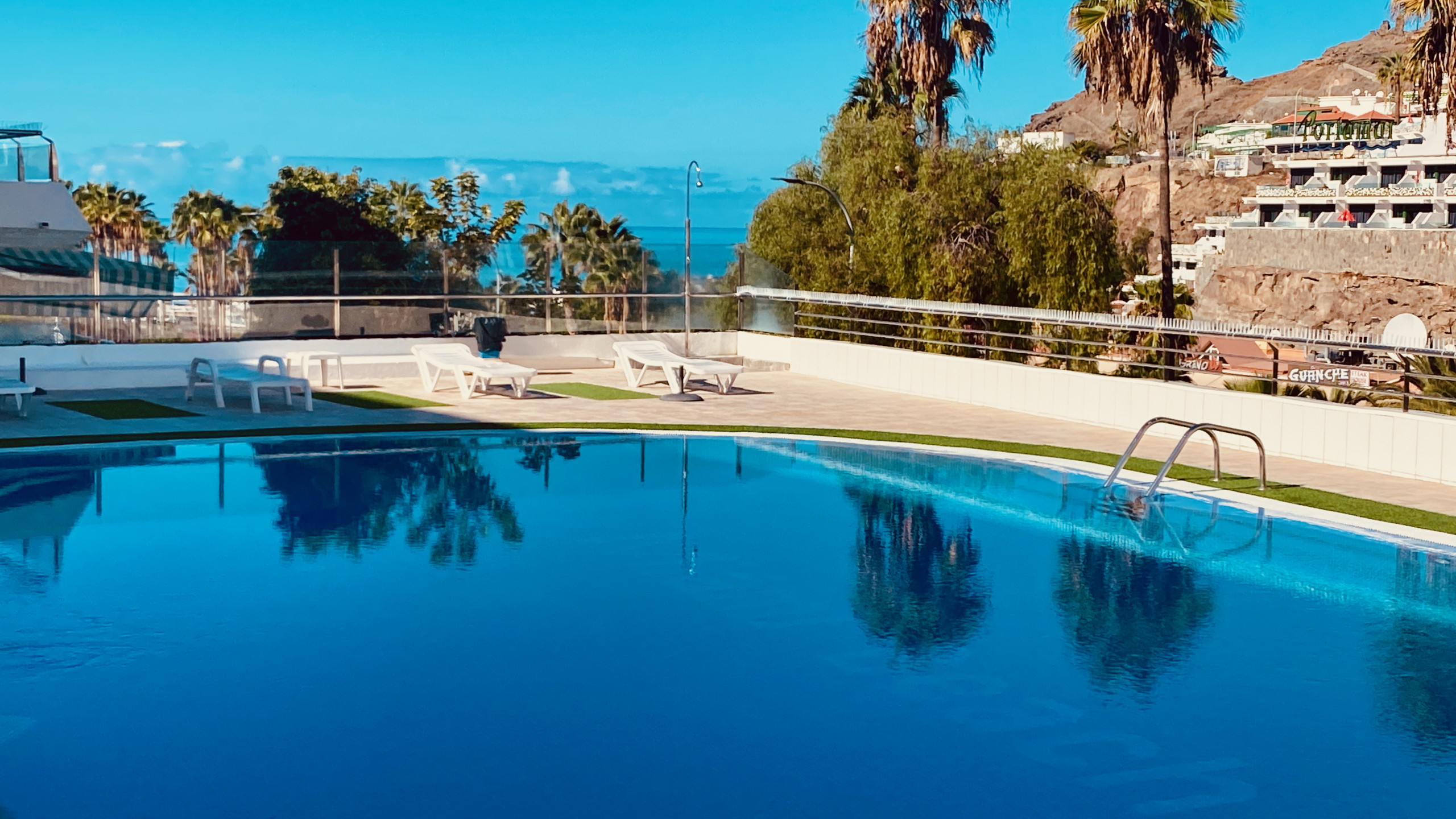 Ruhige und komfortable Wohnung in Puerto Rico. Nur wenige Minuten vom Strand und Einkaufszentren, mit einem herrlichen großen Swimmingpool und auch mit einem Kinderbecken.
