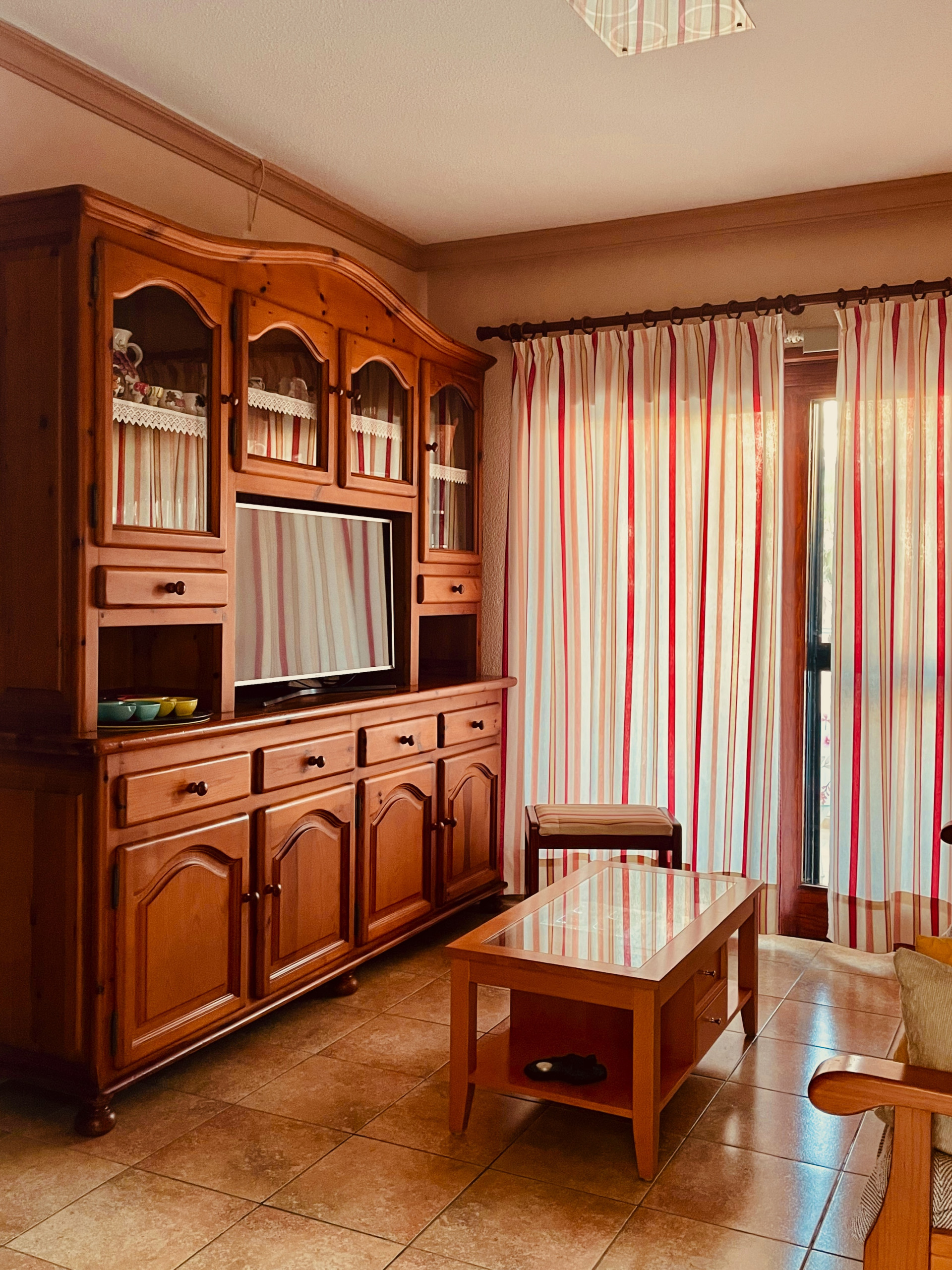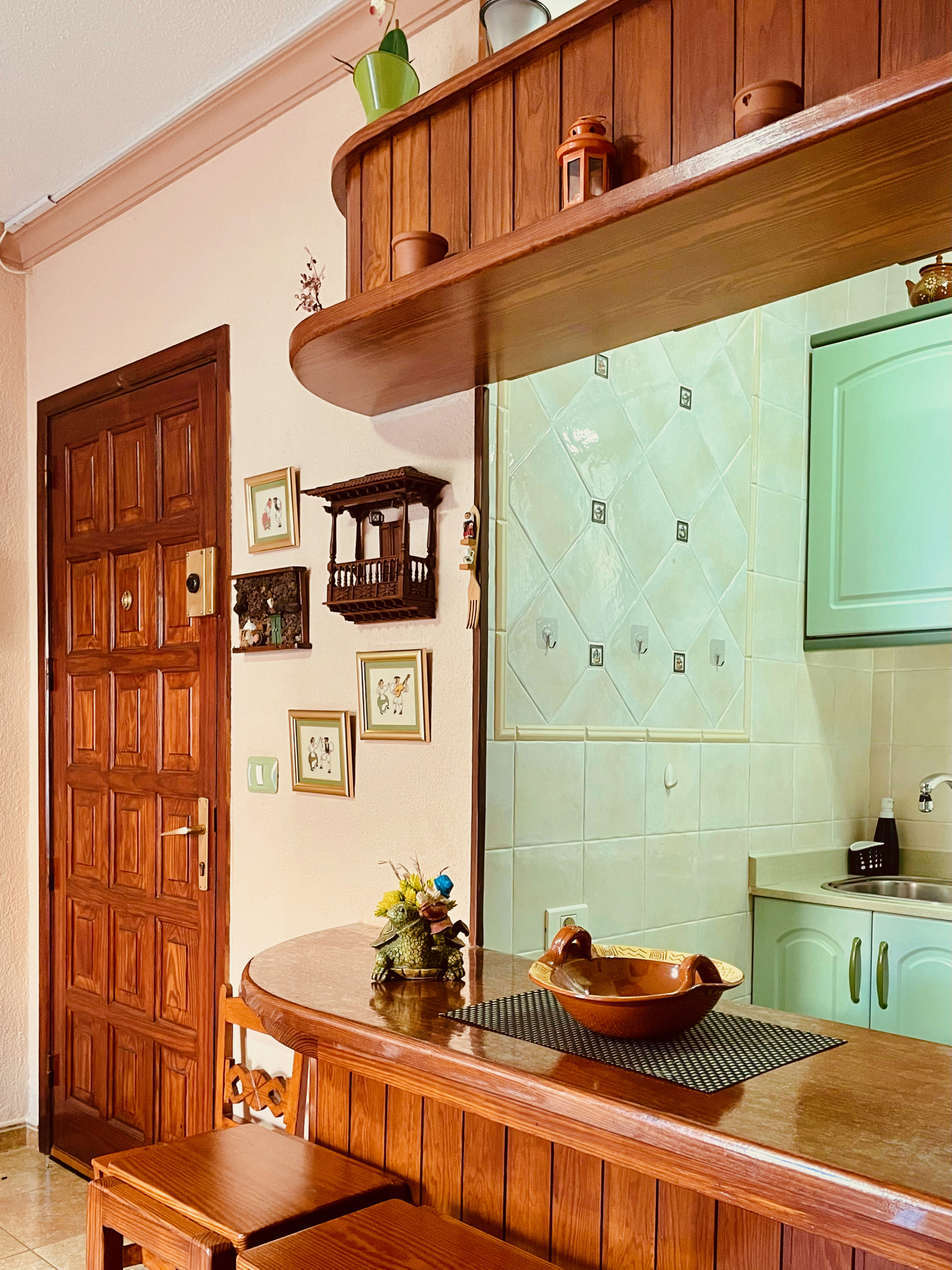 Im Inneren haben wir ein lichtdurchflutetes Wohnzimmer mit Schlafsofa, offener Küche, Frühstückstheke, einem Doppelbett mit Einbauschränken und einem Badezimmer. Der gut gepflegte Komplex bietet einen herrlichen Erwachsenenpool, einen Kinderpool und ein Solarium und befindet sich nur wenige Gehminuten von einem Einkaufszentrum entfernt, in dem sich Supermarkt, Restaurants und Cafés befinden.