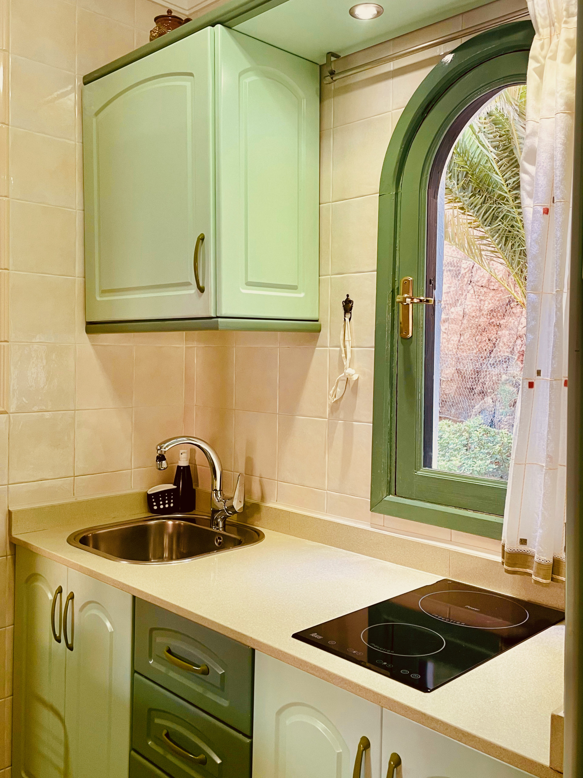 Das Innere des Apartments ist mit allen notwendigen Annehmlichkeiten ausgestattet, um Ihren Aufenthalt unvergesslich zu machen. Von der modernen amerikanischen Küche bis hin zum gemütlichen Wohnzimmer mit Fernseher wurde jedes Detail für Ihren Komfort gestaltet. Die WLAN-Verbindung hält Sie während Ihres Urlaubs in diesem kanarischen Paradies in Verbindung.